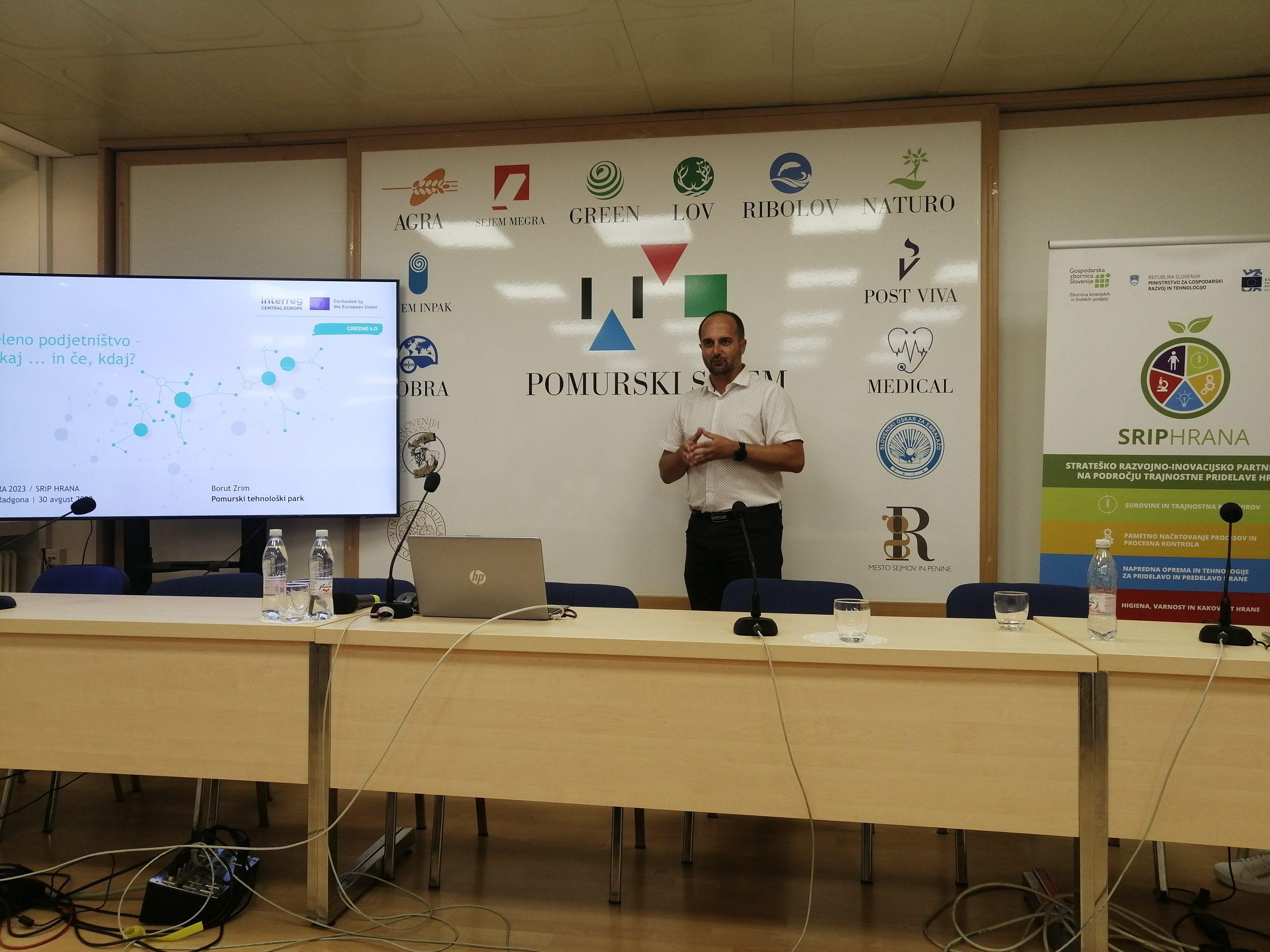 V sklopu predstavitve aktivnosti projekta GREENE 4.0 je Borut Zrim pozval prisotne, da povabijo svoja podjetja člane in partnerje k sodelovanju v anketi, kjer bomo skupaj poskusili razumeti odnos, ovire, izzive in pripravljenost malih in srednje velikih podjetij (MSP) na prehod na zeleno proizvodnjo.